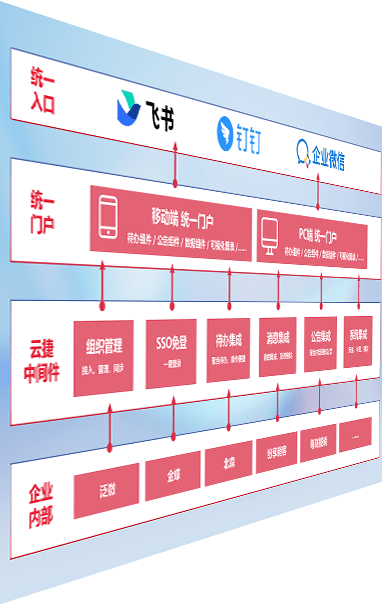 对协作平台提供支持服务,,支持企业应用与协作平台对接,,包含组织同步、、消息集成、、待办集成等。。。。支持目前主流的协作平台:钉钉、、、企微和飞书。。